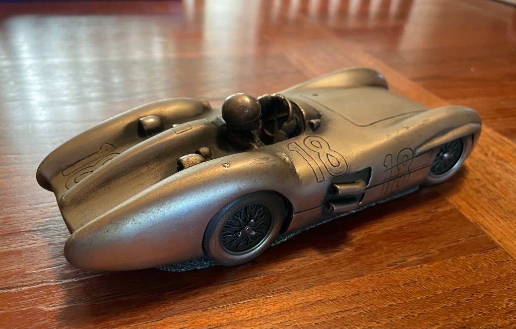 The Compulsion Sculpture model of a Mercedes-Benz W196R, pewter, 7 1/2 in. long.