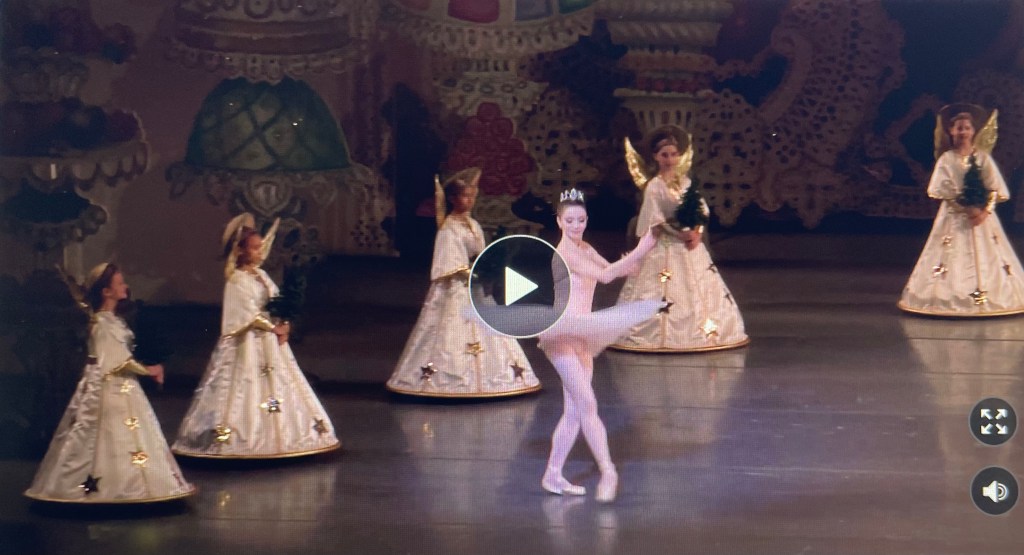 Megan Fairchild dances the Sugarplum Fairy in New York City Ballet’s production of George Balanchine’s production of The Nutcracker. (Activate if you’re online.) Image from the New York City Ballet.