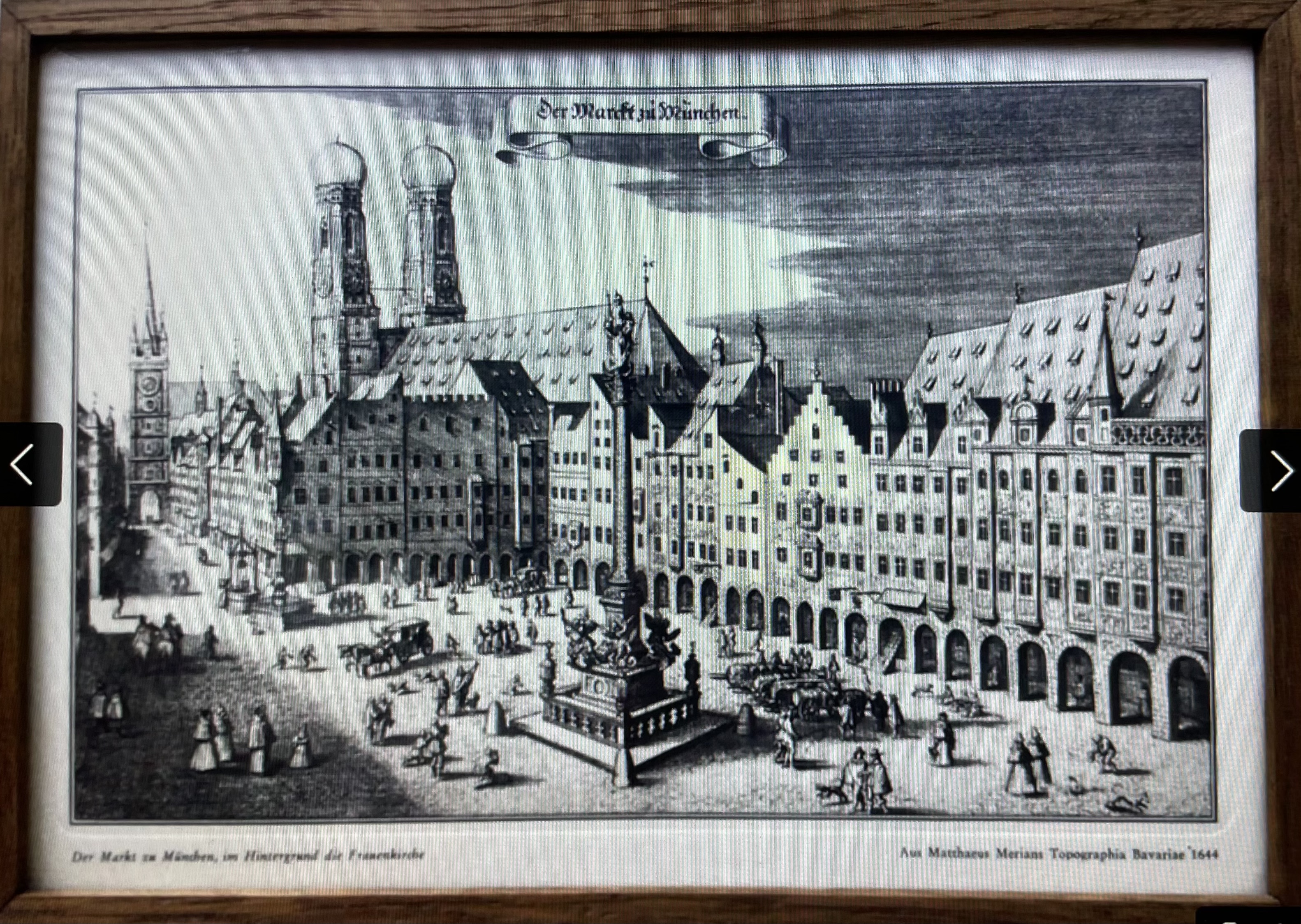 Der Marckt zu München, 1644. This was near the end of the Thirty Years’ War. Image from Kleinanzeigen.