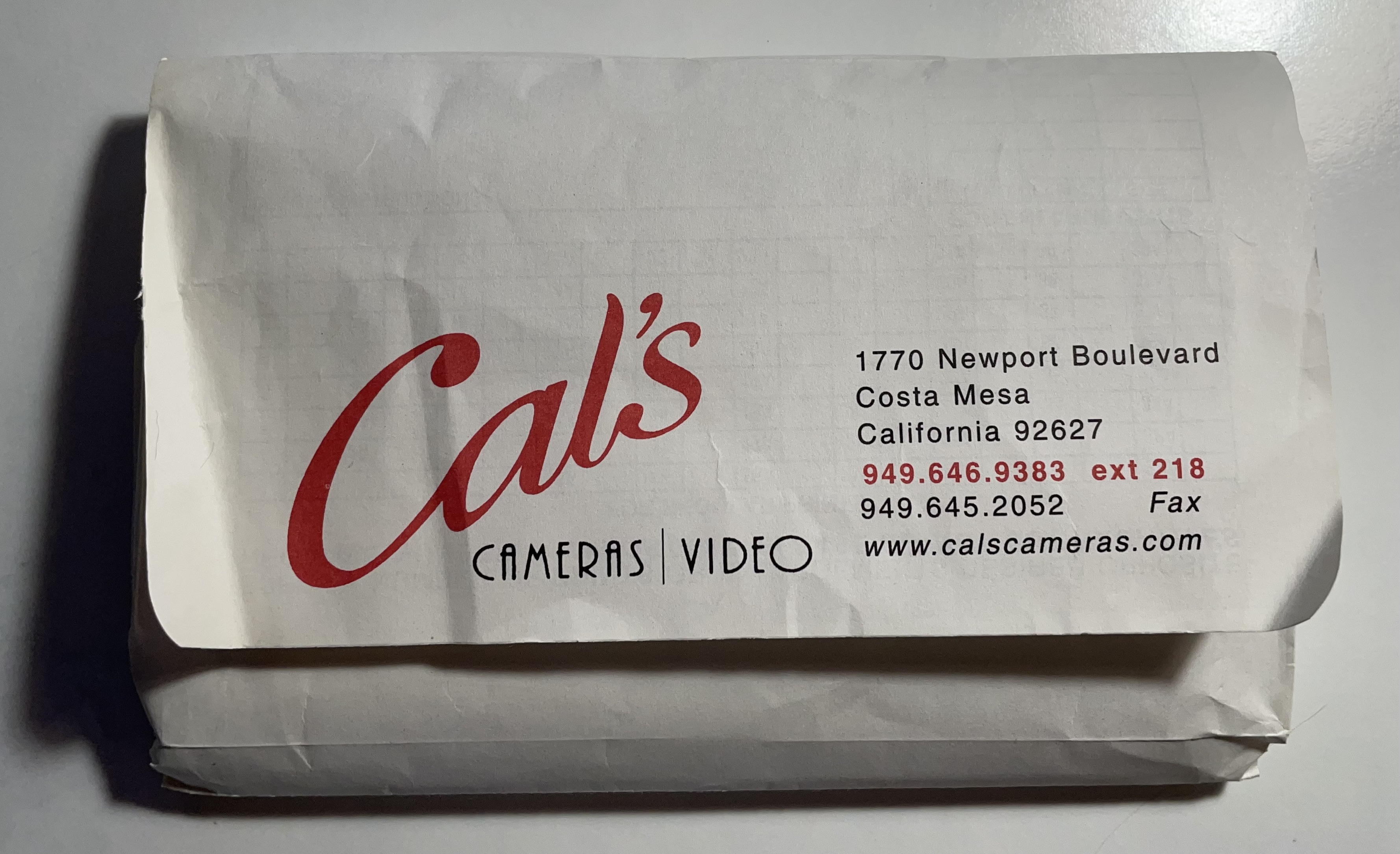 I WAS RUMMAGING AROUND for Birthday/Christmas wrapping when I discovered an artifact from days when Cal’s Cameras/Video did all of R&T’s photo processing.