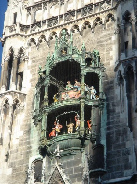 The Neue Rathaus contains the Glockenspiel, famous for its animated figures celebrating the end of the plague in 1517 as well as the 1568 marriage festivities of Duke Wilhelm V.