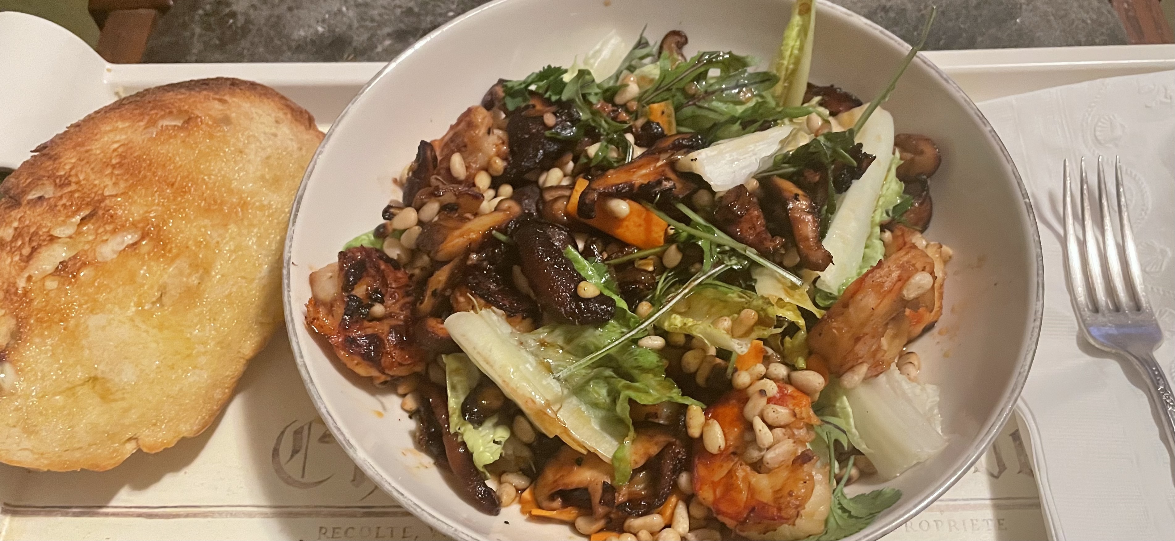 THE SHIITAKE MUSHROOMS LOOKED BRIGHT and appetizing in the Vons produce department. My freezer already had Wild Argentine Red Shrimp (ha. sounds like one of Trump’s WWE cage pals), so dinner planning was easy-peasy. Assembling the fixings, I used my iPhone to document it all here for SimanaitisSays.