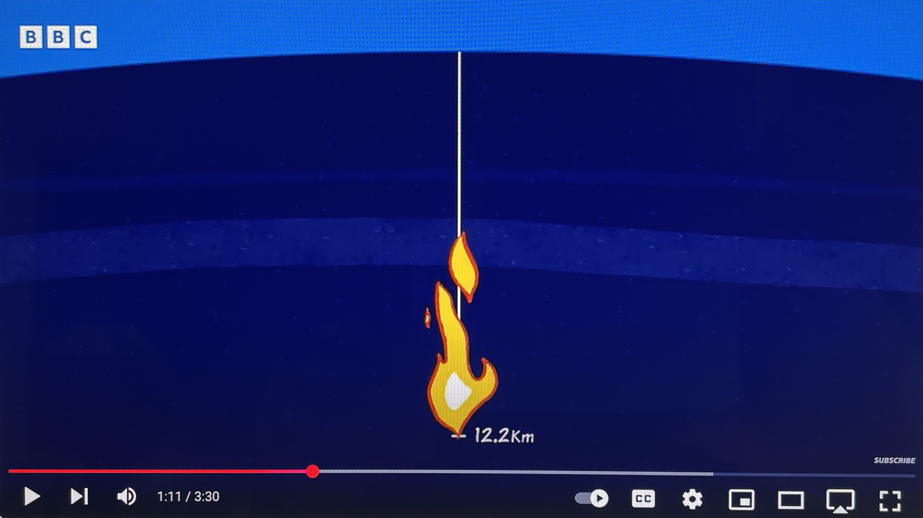 “And if you didn’t have to worry about the heat at the centre and there was no air in the pipe,” the professor observes, “you’d arrive at the top [sorta the bottom] of the pipe at no speed.”
