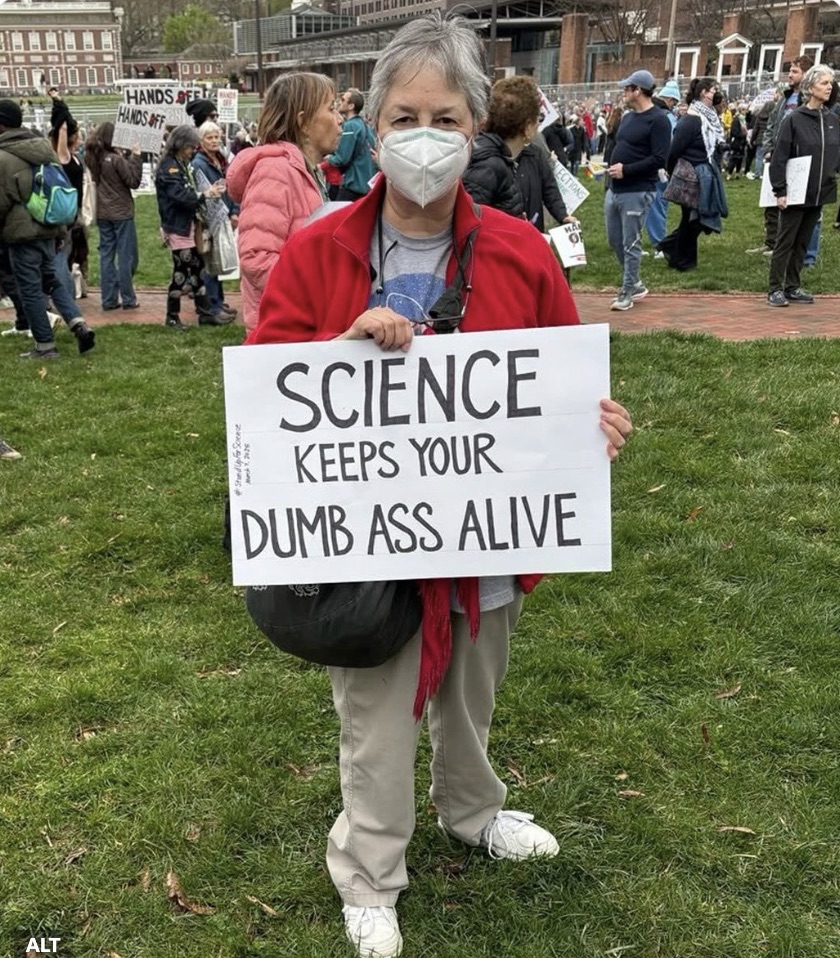 Let’s Give Science a Try. This woman evidently shares my views on Science. I’m reminded of Trump’s recommending bleach for our Covid treatment (but you can bet your ass he got real scientific care when he succumbed).