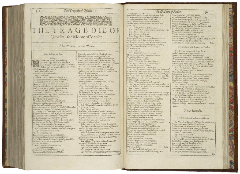 The first page of Othello from the the First Folio, printed in 1623. Image from Wikipedia.