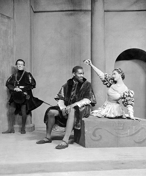 Maurice Browne (Iago), Paul Robeson (Othello), and Peggy Ashcroft (Desdemona) in Othello at the Savoy Theatre, 1930. Image from newyorkerstateofmind.com.