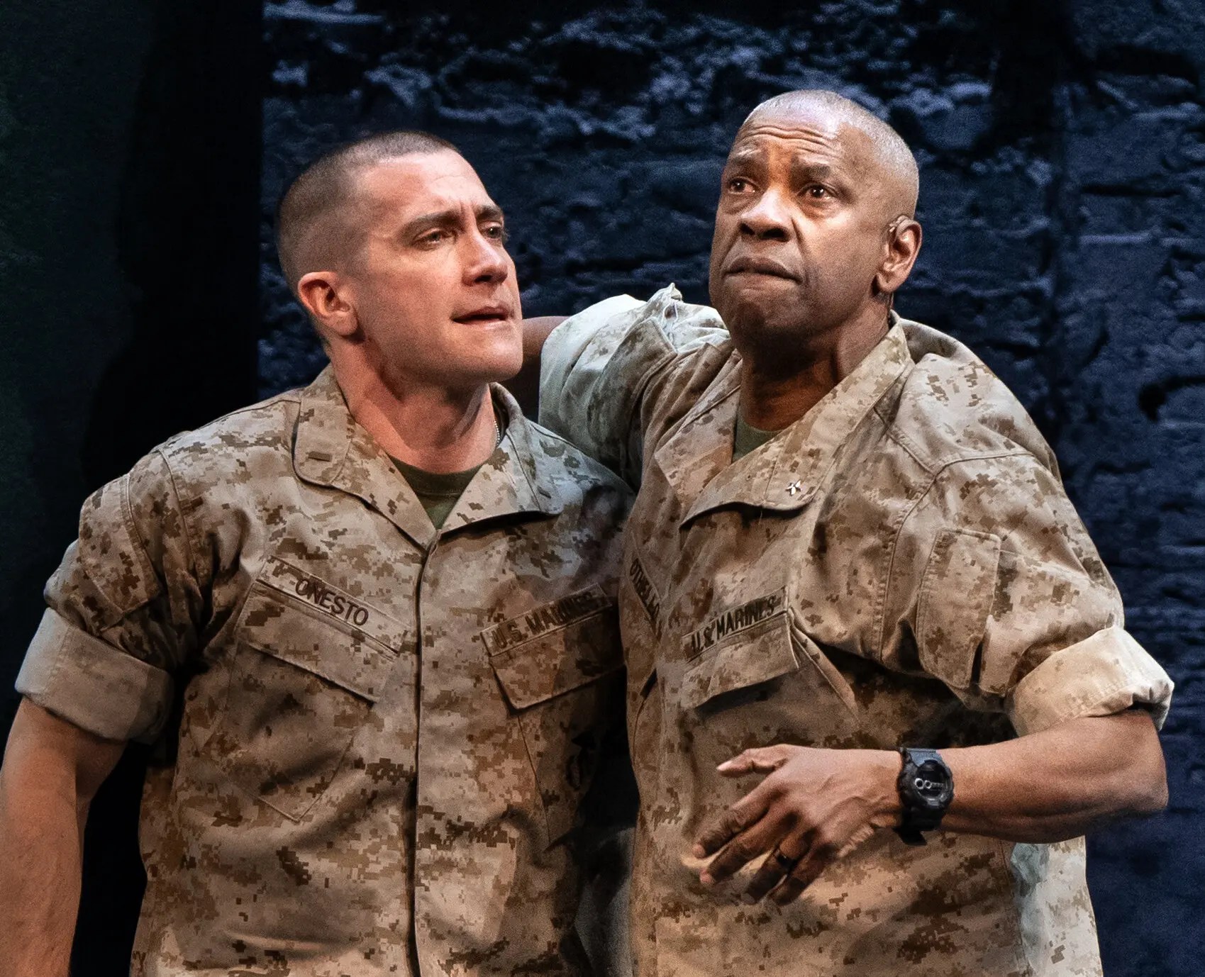 Jake Gyllenhaal and Denzel Washington in the play’s latest revival, on Broadway through June 8, 2025. Image by Sara Krulwich/The New York Times.