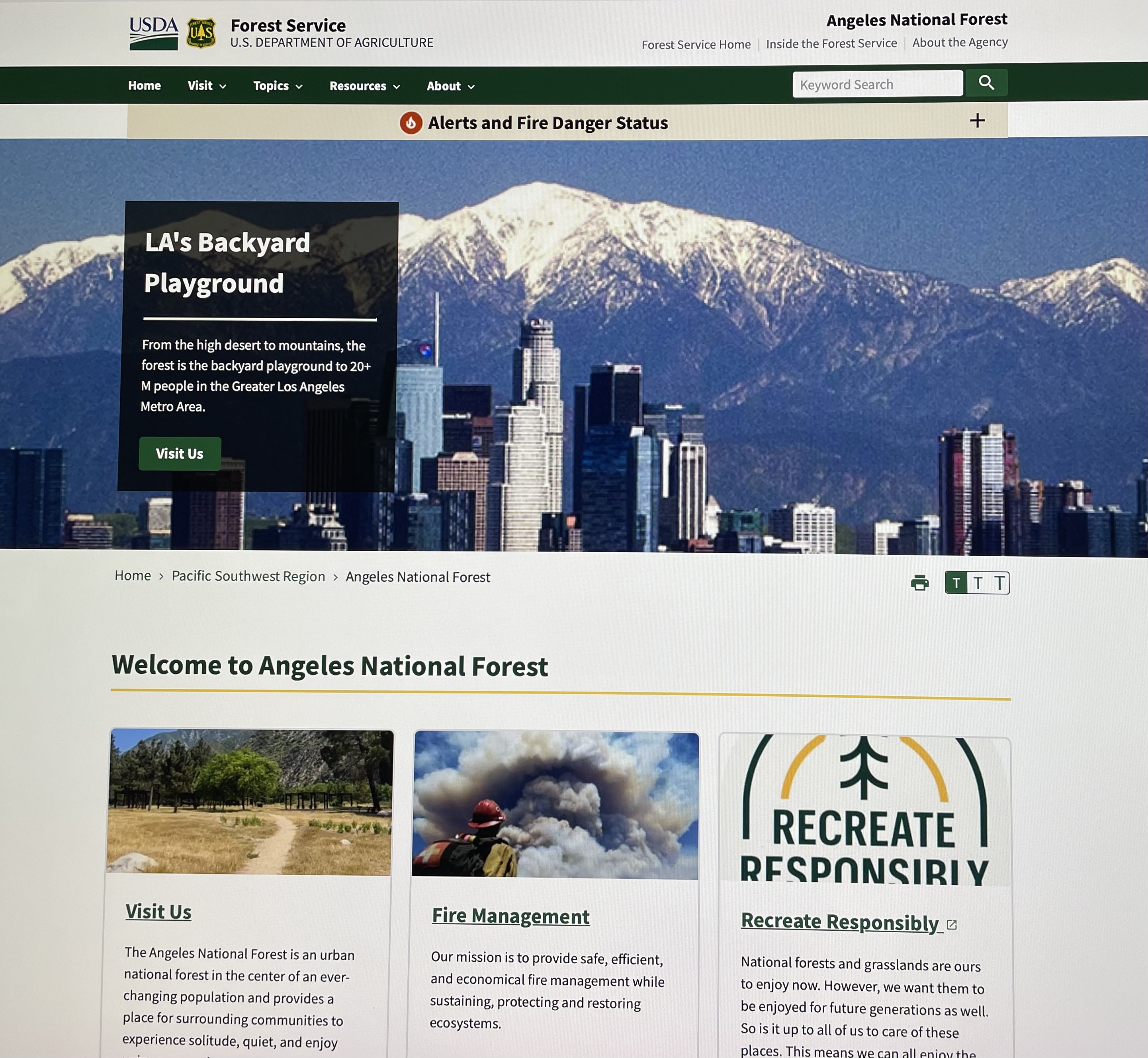 However, clicking on this Google choice doesn’t get any information. Here in SoCal it gives the USDA Forest Service Angeles National Forest lead page, with nary a mention of poodle-dog bush.