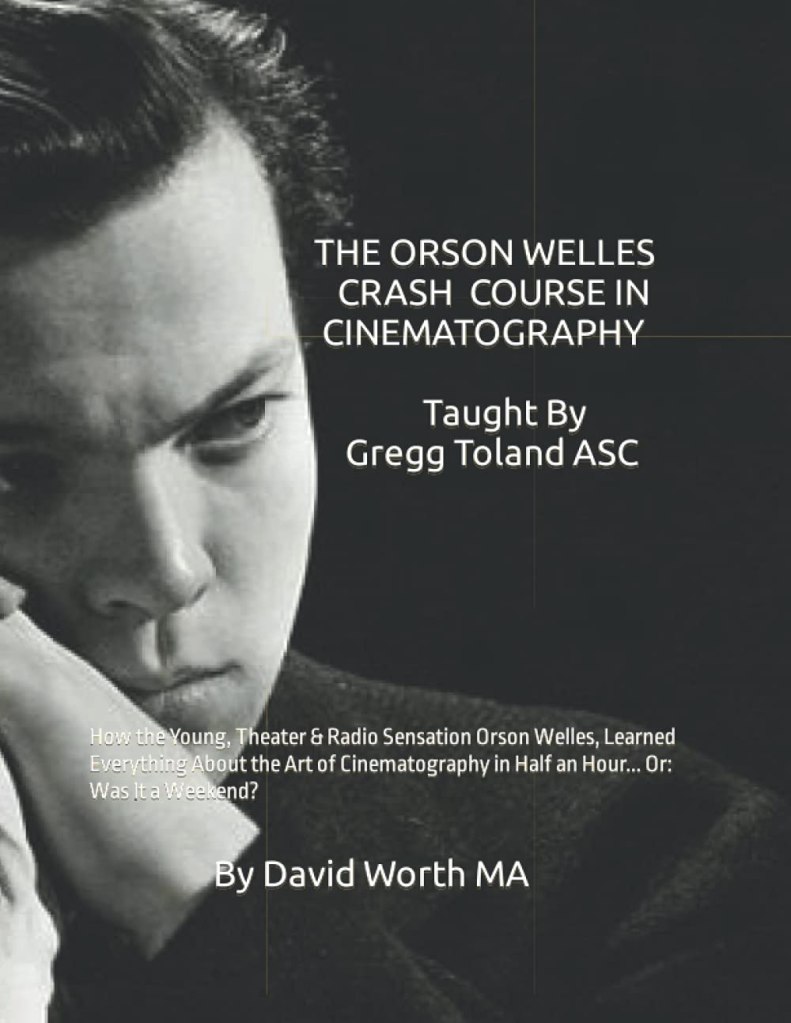 And indeed, there’s a wonderfully entertaining book, The Orson Welles Crash Course in Cinematography, Taught by Gregg Toland ASC, by David Worth: “A WILDLY Fictional Account of: How the Very Young Theater & Radio Sensation Orson Welles Learned Everything About The Art of Cinematography in Half an Hour… Or: Was It a Weekend?”