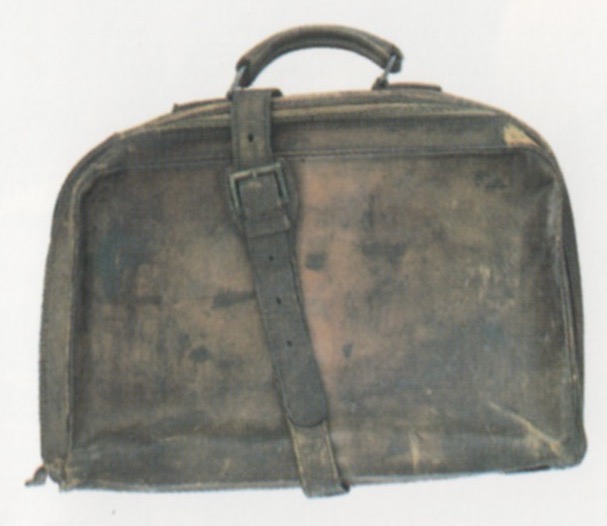 Ascari carried his racing kit, including that light blue helmet, in this traveling bag. In those days, a top driver visited 40-50 venues a year.