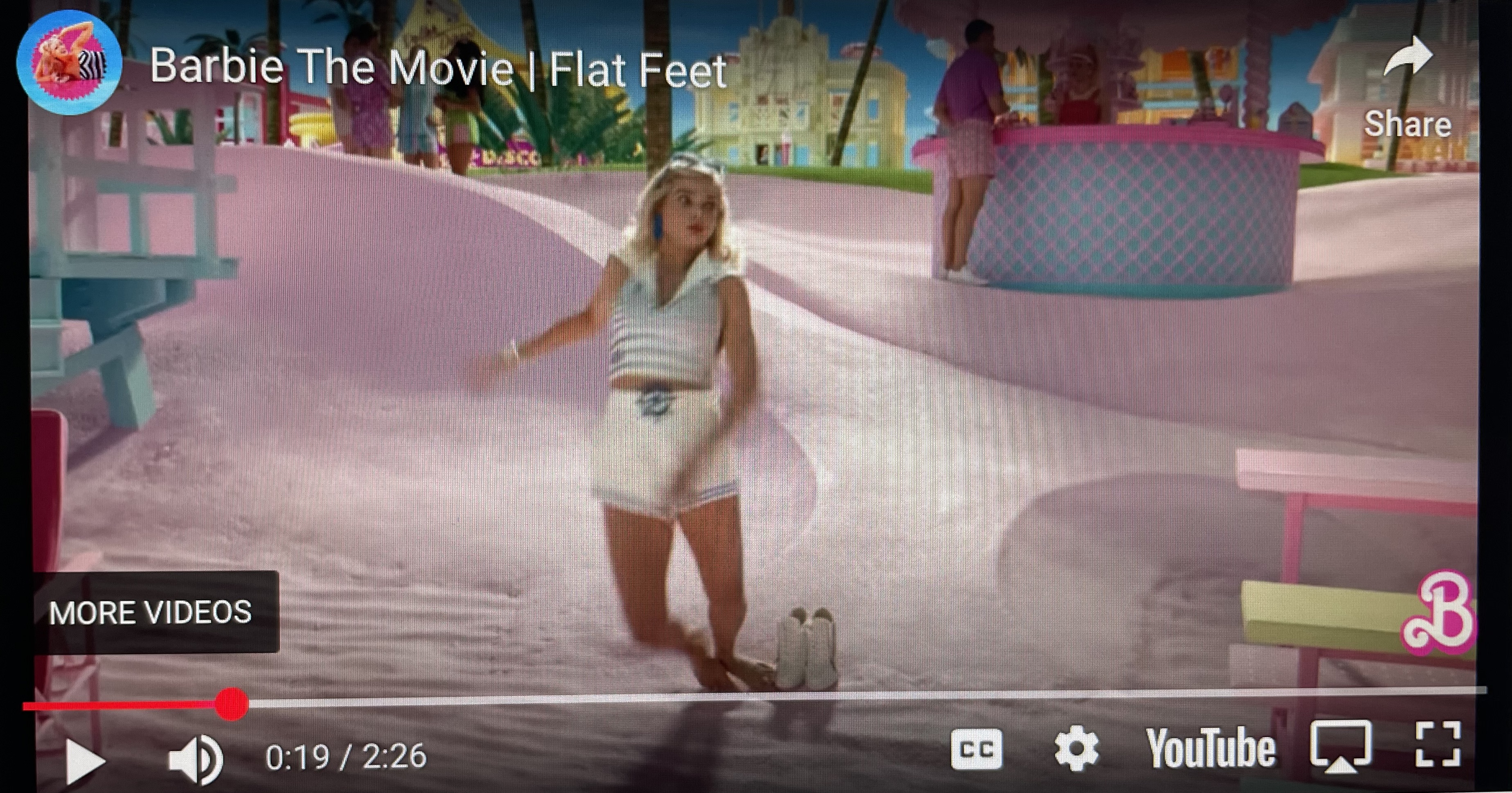 Above, the title from a YouTube (accessible from Gupta’s article); below, the result of Barbie’s first flat-footed experience.