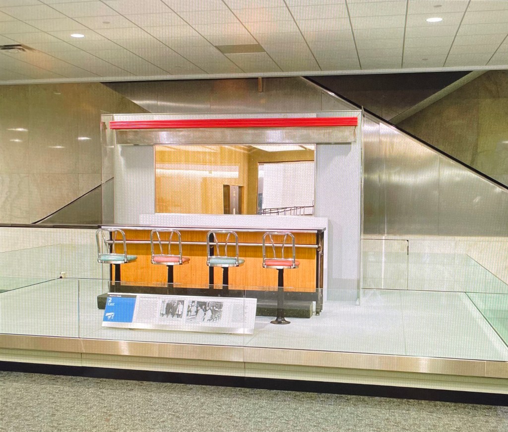 However, she continues, “Like many public spaces in the mid-1900s, some lunch counters were subject to Jim Crow laws, and thereby inadvertent political crucibles.”
