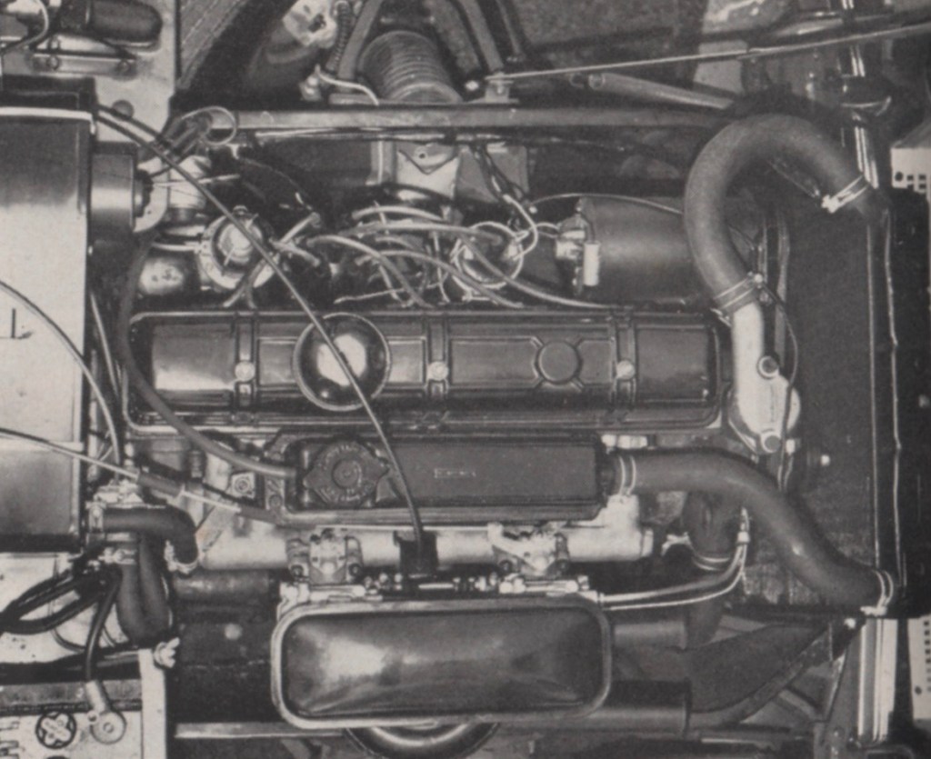 Long-proven Reliability—If Unexciting. “Overall,” R&T recounted, “The Sports-6 engine is a very straightforward design. The crankshaft runs in 4 bearings, the cylinder block and cylinder heads are of alloy-iron, and the in-line, vertical valves are operated through rockers and long, solid pushrods from a camshaft located well down in the block. It can claim, however, a long-proven reliability, and although the present 70-bhp (net) output is nothing that will create much excitement, the fact that the engine appears to be understressed and has such features as all-separate intake and exhaust porting speaks well for future performance improvements.”