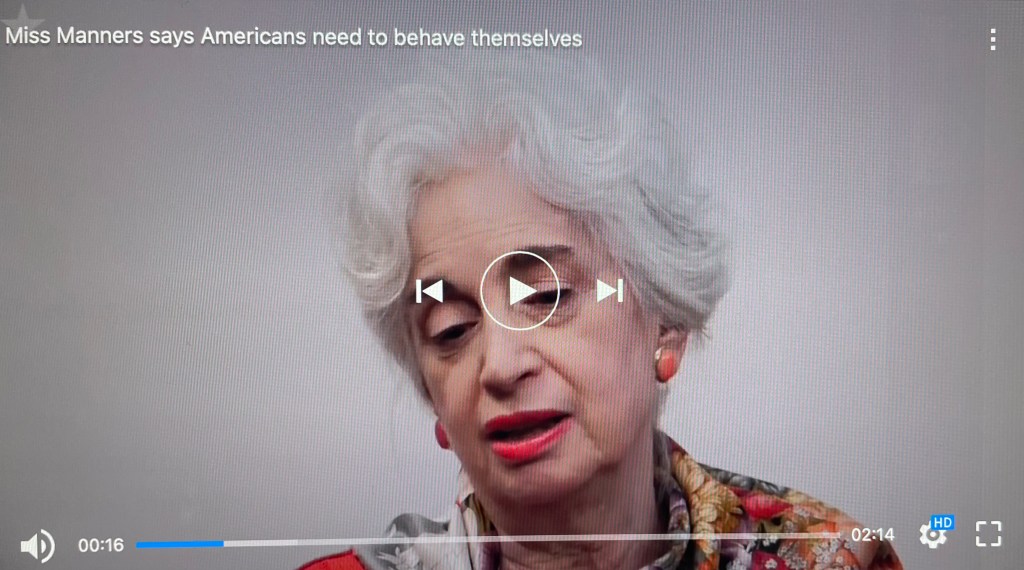 Judith Martin, “Miss Manners.” Her 2016 video can be accessed through The Kansas City Star.