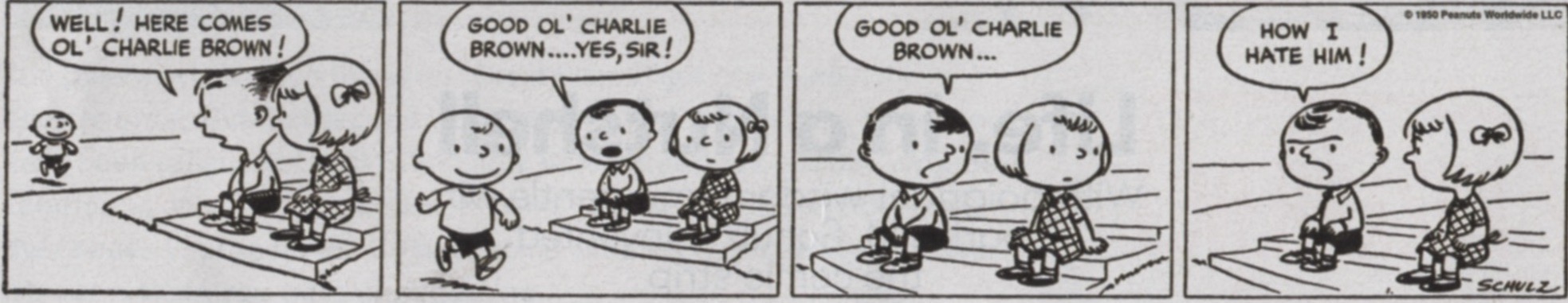 The first Peanuts panel, 1950.