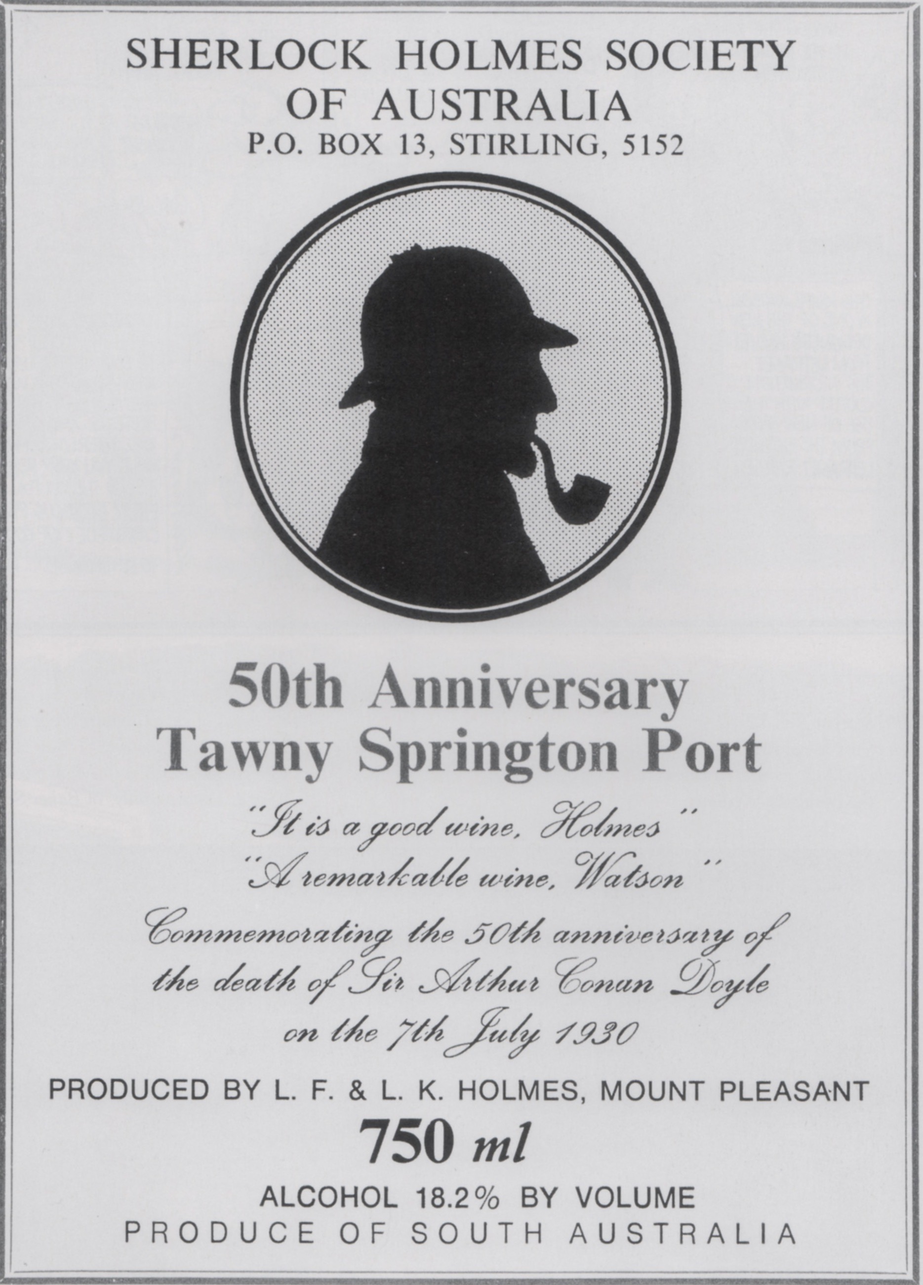 An Aussie Port. The Sherlock Holmes Society of Australia reaches far in its endorsements: “It’s a good wine, Holmes” “A remarkable wine, Watson.”