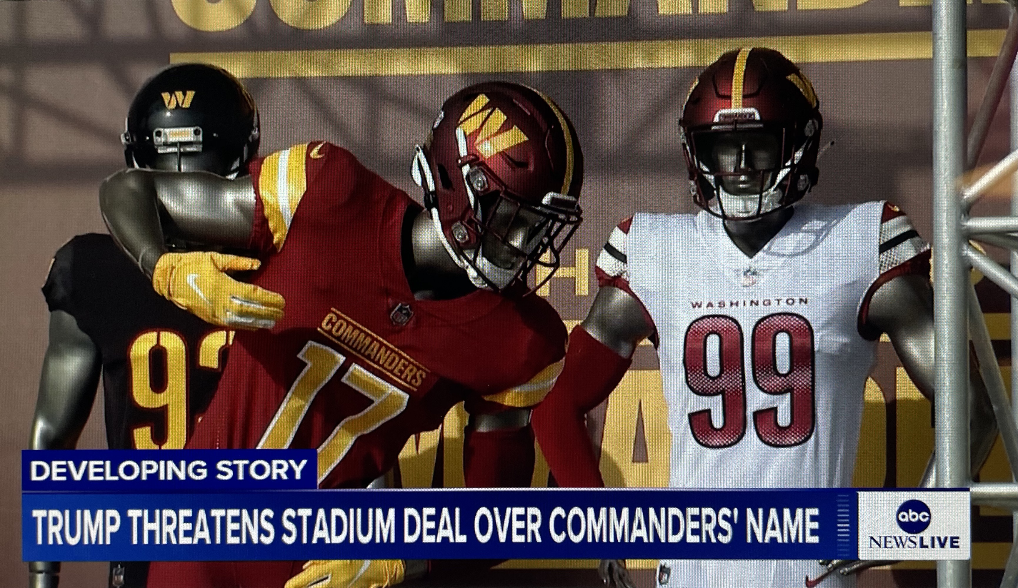 A Petty Gangster Deal. Hannah Demisse writes “Trump ‘Won’t Make a Deal’ with Washington Commanders If Team Refuses to Change Name,” ABC News, July 21, 2025. Demisse describes, “President Donald Trump threatened the Washington Commanders football team, saying he will not facilitate a deal for the team’s new stadium to be built in Washington, D.C., if it does not revert to its former name.”