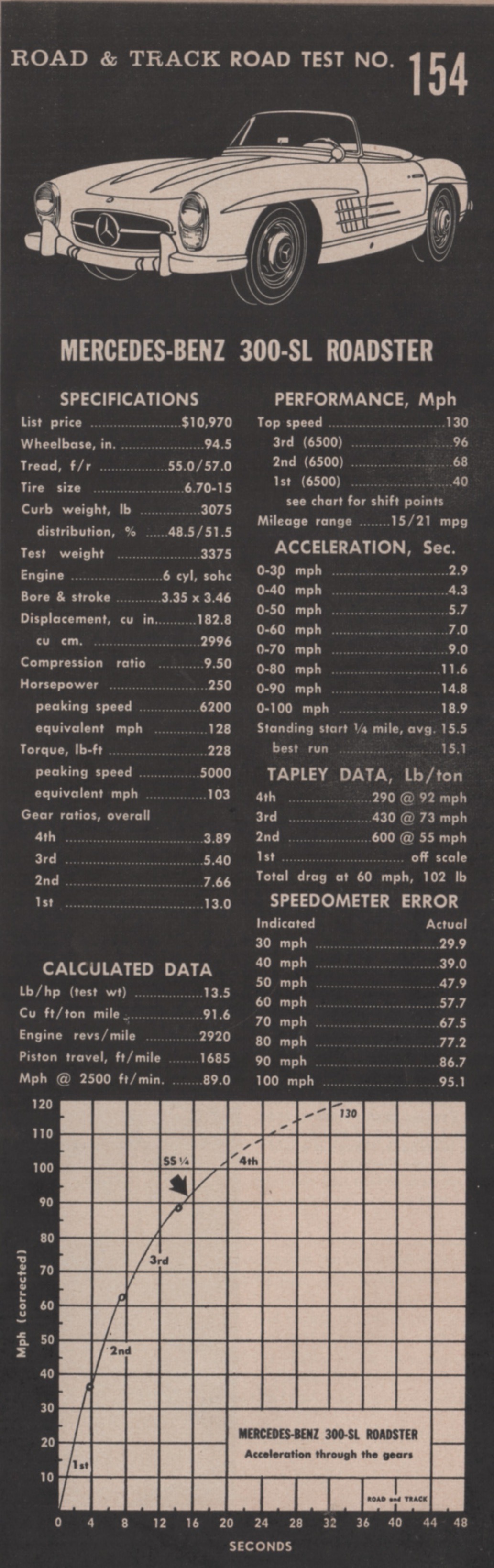 R&T Sums Up in 1958: “While the price asked seems almost astronomical, there is no doubt that the 300-SL Roadster is a truly dual-purpose sports car, equally at home in traffic and the open road, or on the track.”