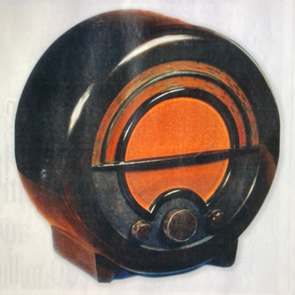 An Ekco A76 radio, c. 1934. “Radio ownership boomed in the interwar years, when the use of Bakelite (an early plastic) allowed Ekco to create alternatives to earlier square wooden cases.”