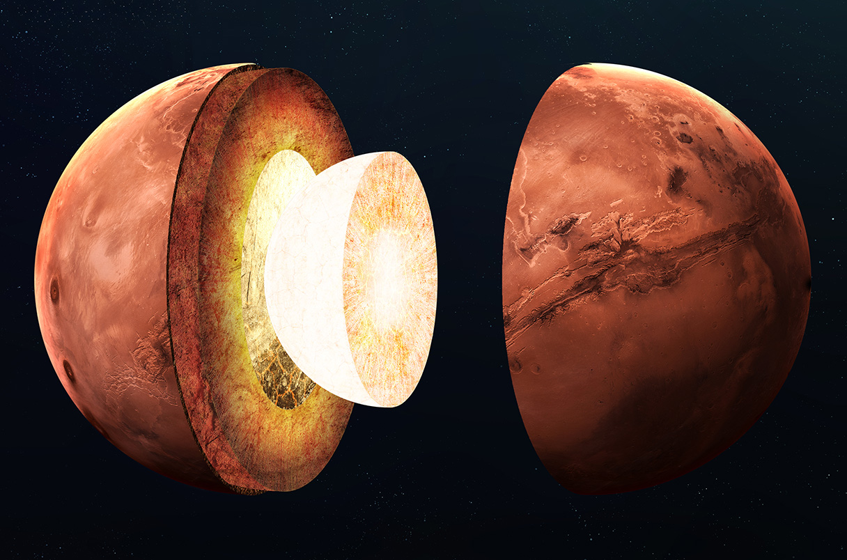 “Taken together,” Voosen recounts, “the findings suggest a planet that is both more, and less, like Earth than researchers expected. The first result, published last week in Science, suggests the martian mantle—the layer of rock that makes up most of its volume—does not ooze and mix like on Earth, but rather preserves the remnants of smaller planetary bodies that collided to form the planet. The second result, published today in Nature, goes deeper, finding that rather than possessing a purely molten metal core, as earlier InSight analyses suggested, Mars—like Earth—has a solid core at its center.”