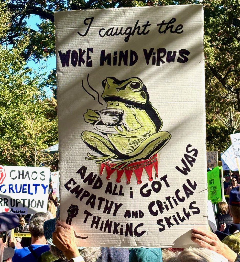 ON OCTOBER 18, 2025, 7 MILLION AMERICANS protested Trump 2.0’s autocracy. Yesterday, we concentrated on the absurdities of a government official saying “Who cares?,” of Trump himself posting a scatological video of his kingly response, and of the Secretary of what used to be called “Defense” exhibiting incredibly poor judgement in celebrating the 250th anniversary of the U.S. Marines.