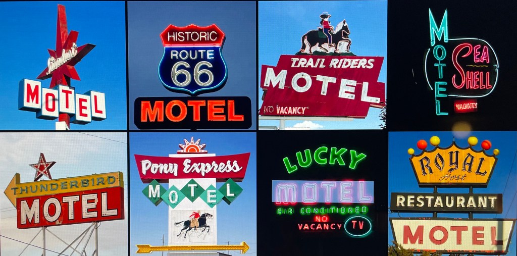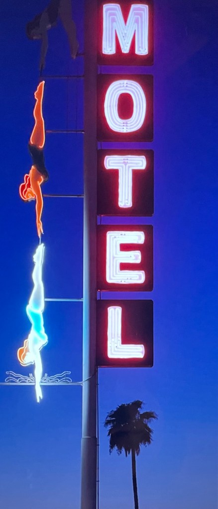MEGAN MCCREA CELEBRATES “100 YEARS of the Motel: Neon Signs, Swimming Pools, and American Dreams,” The New York Times, October 22, 2025. What fun, even if experienced armchair-fashion! Here are tidbits gleaned from McCrea’s article, together with some Internet sleuthing and personal recollections.
