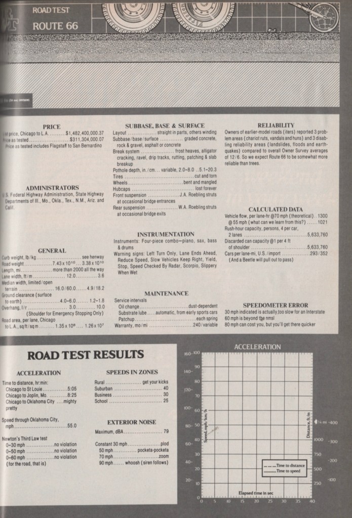 R&T Modest Contribution. It also gave R&T a unique “road” test in 1982; April, of course.