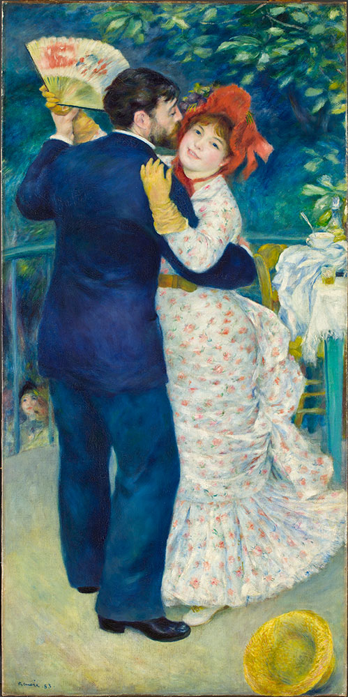Dancers (Bougival) or Dance in the Country, 1883. Oil on canvas. The painting resides in the Musée d’Orsay, Paris. Its two dancers are evidently much enamored. Studies on paper show this “fleeting image” took considerable planning.