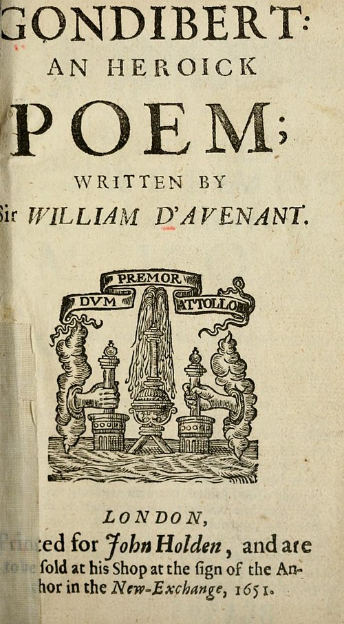 The title page of the 1651 edition of Gondibert, one of Davenant’s more memorable works.