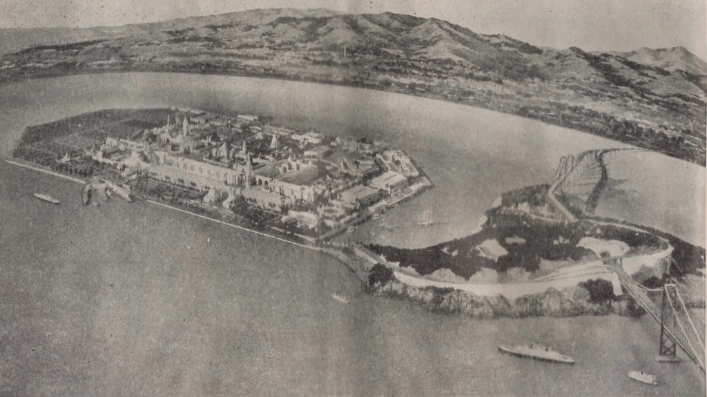 Treasure Island 1939. “The Golden Gate International Exposition,” noted SimanaitisSays in 2020, “celebrated San Francisco’s two newly built bridges: The San Francisco-Oakland Bay Bridge opened in 1936; the Golden Gate Bridge, in 1937.” This exposition also introduced the world to Treasure Island, an artificial island built in San Francisco Bay.