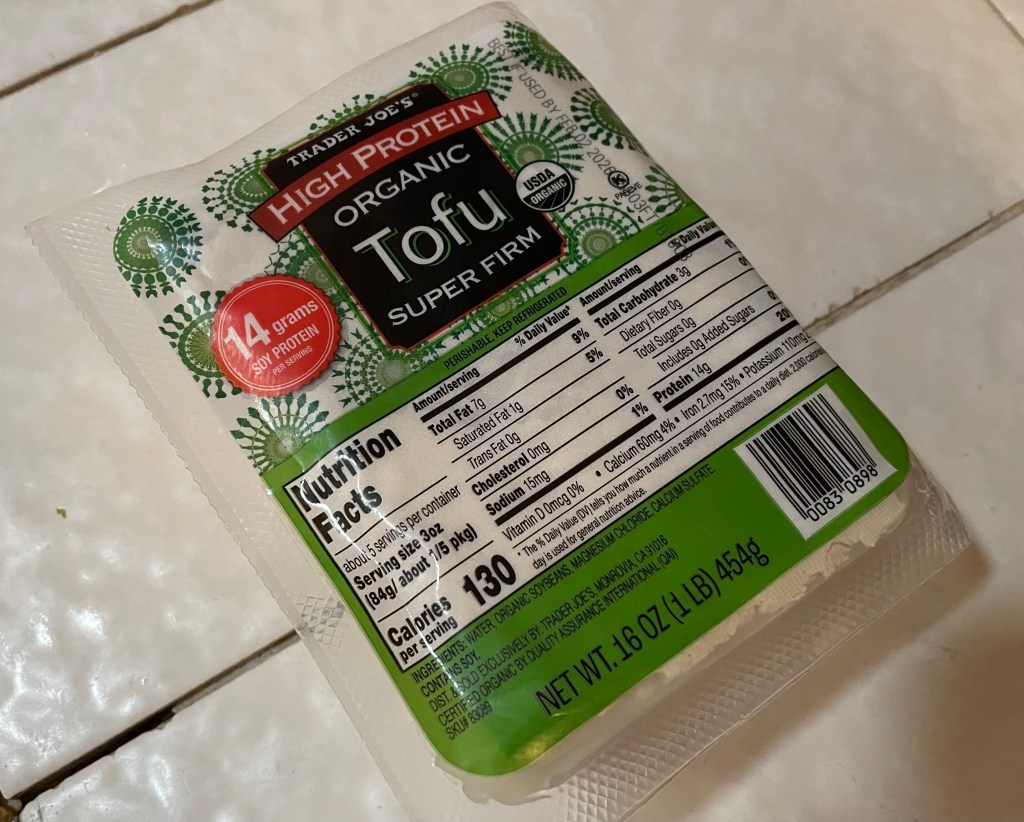 Tofu. I prefer the Extra Firm variety. It’s more amenable to cubing and frying, especially after wrapping it in some paper towel and letting it press/drain (the weight, my wok).