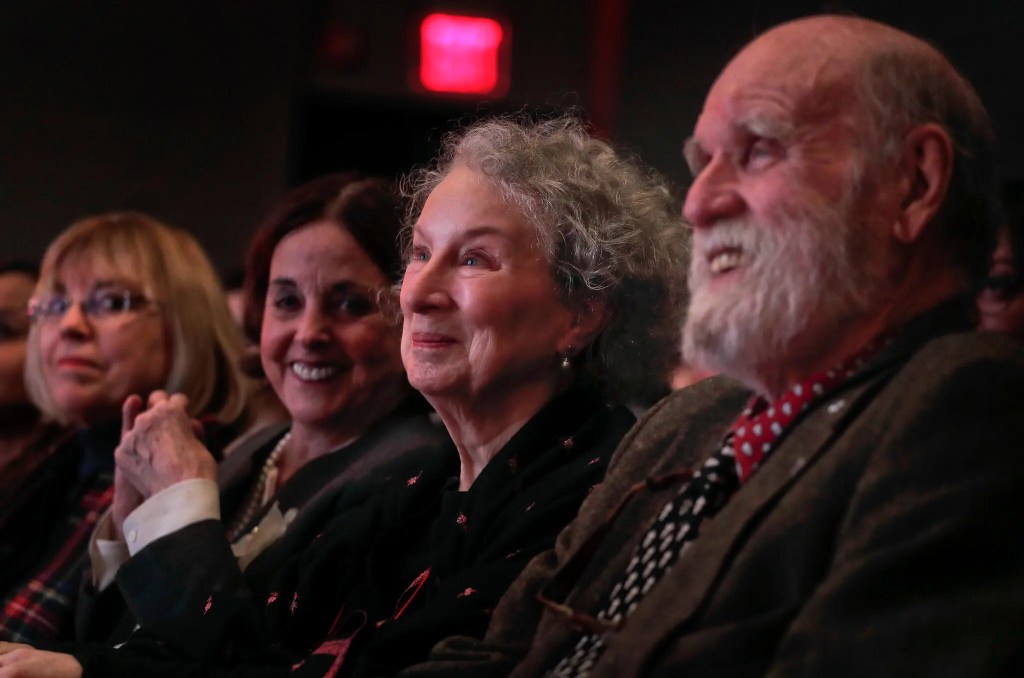 Atwood with Graeme Gibson, her late pal, at the 2017 National Book Critics Circle awards ceremony (she won the Ivan Sandrof Lifetime Achievement Award that year). Image by Julie Jacobson/Associated Press via The New York Times.