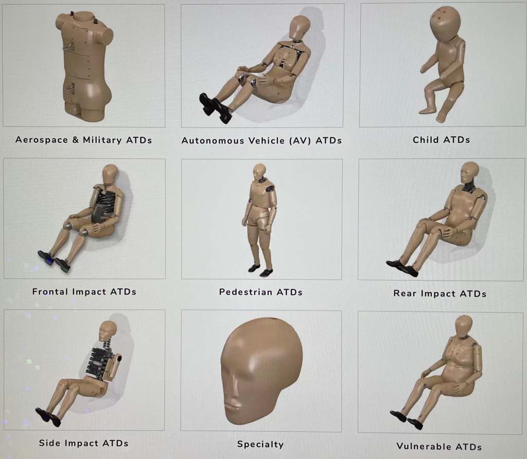 Today, for example, Humanetics offers a variety of ATDs, including those with Aerospace and Military, Autonomous Vehicle, and Pedestrian applications. There are also Elderly Vulnerable, Obese, and Powered Two-Wheeler Dummies.