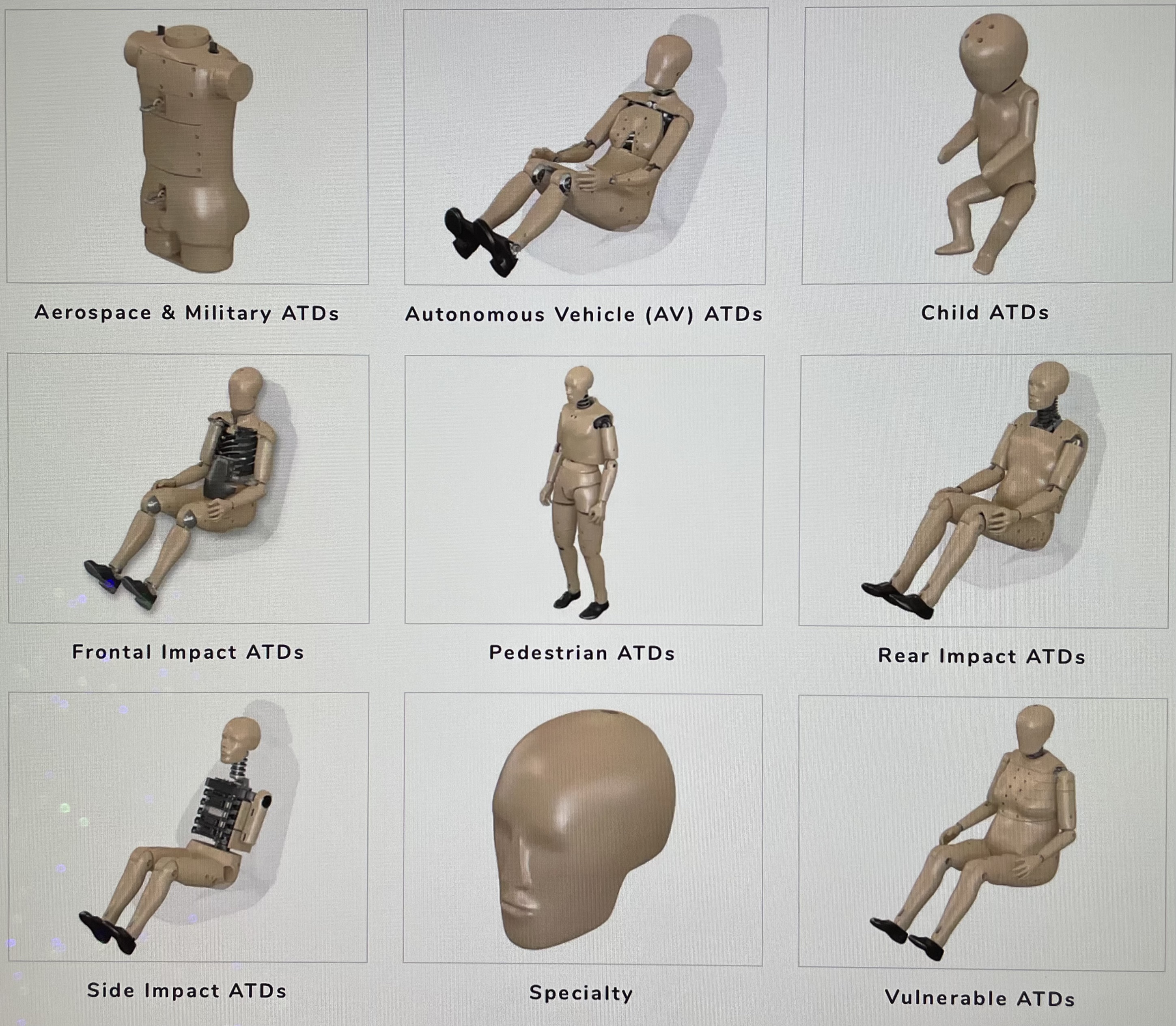 Today, for example, Humanetics offers a variety of ATDs, including those with Aerospace and Military, Autonomous Vehicle, and Pedestrian applications. There are also Elderly Vulnerable, Obese, and Powered Two-Wheeler Dummies.