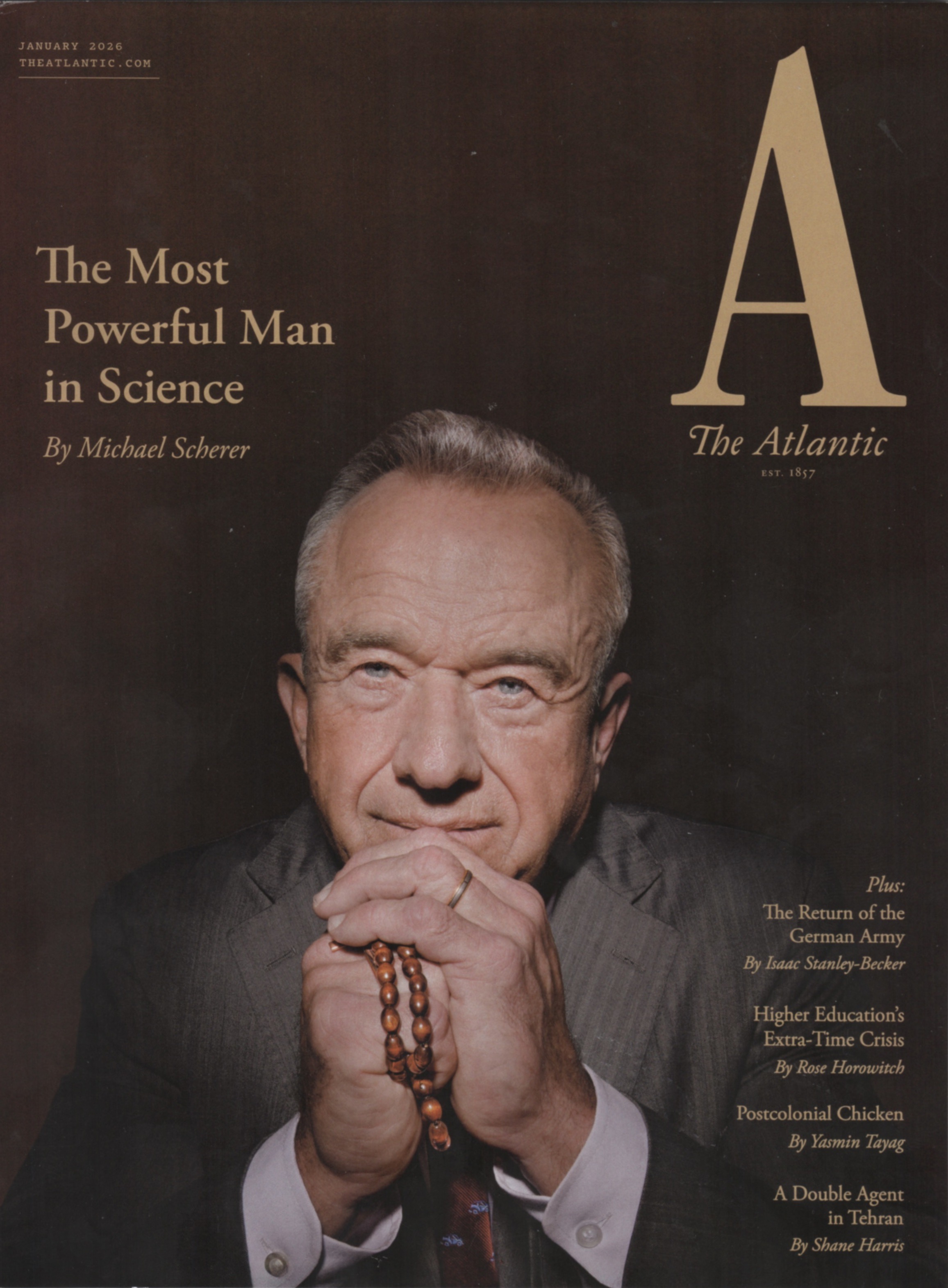 I WAS DISTURBED TO SEE THE ATLANTIC’S JANUARY 2026 COVER BLURB “The Most Powerful Man in Science” accompanying a beatified image of a bead-fondling Robert F. Kennedy Jr. Is this meant satirically ? Doesn’t it conflict the word “science” with conspiracy-ridden thinking?