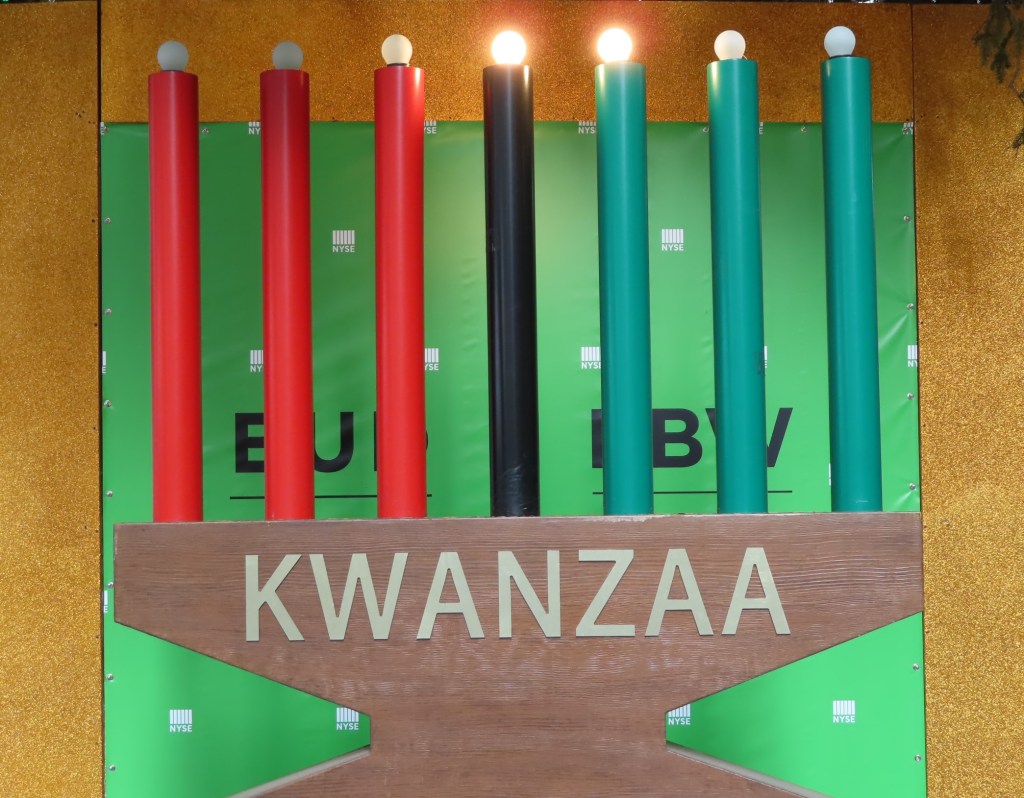 Of Kwanzaa’s seven kinara candles, the central one is black for unity, three red ones symbolize past struggles, and three green represent future hope.