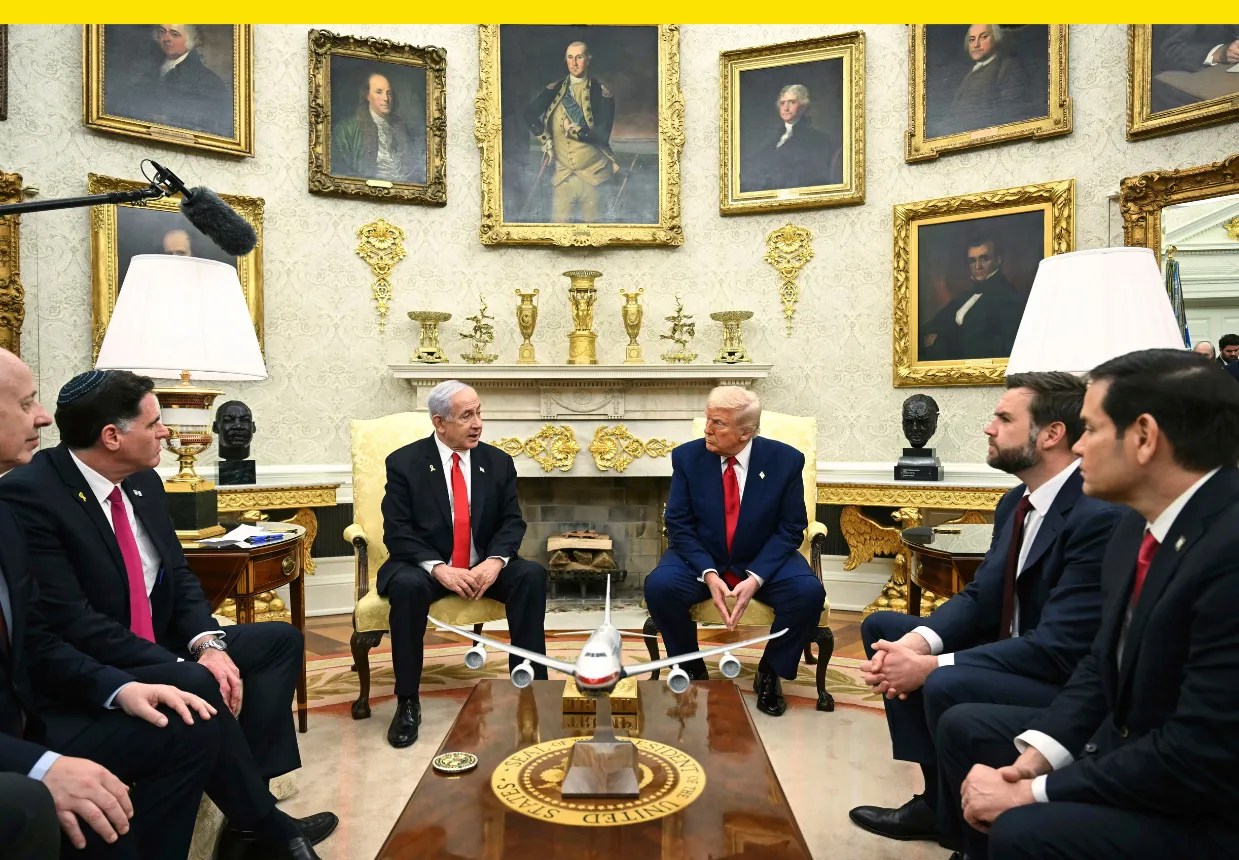 A meeting in the White House Oval Office. Image from Pool via AP.