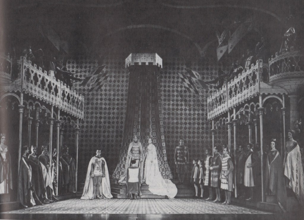 Above, Camelot, setting by Oliver Smith, Majestic Theatre, New York, 1960. Below, Candide, settings and costumes by Eugene Lee and Franne Lee, Broadway Theatre, New York, 1974. Photographs by Friedman-Abeles.