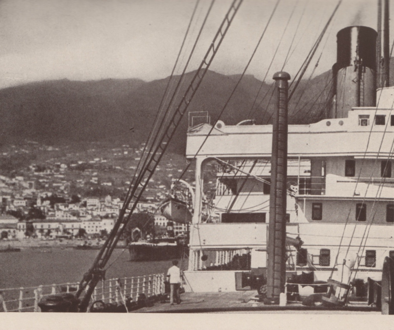 “No harbor on earth affords a more charming scene than the amphitheatre of noble, colorful hills which circle about Funchal Bay. Image and caption from The Mediterranean Cruise.