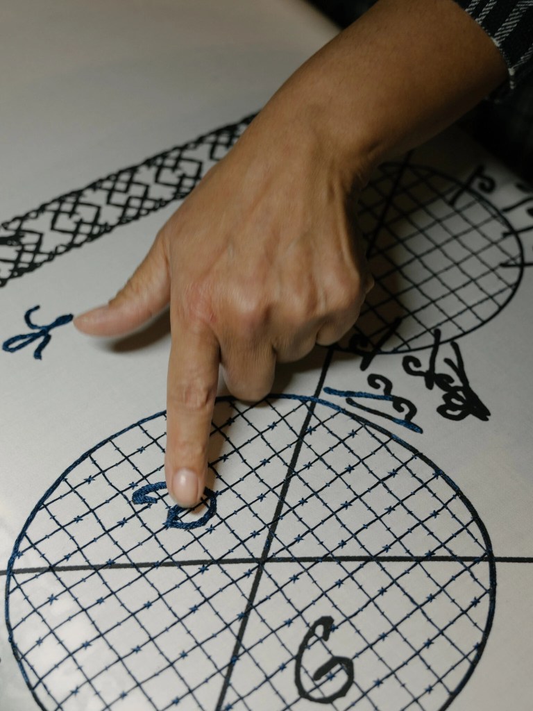 Silk embroidery thread is used in Kameelah Janan Rasheed’s tapestries interpreting the writings of Rebecca Cox Jackson.