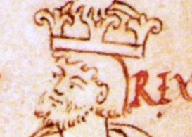 Cnut the Great, c. 990 A.D.-1035 A.D., King of England from 1016, Denmark from 1018, and Norway from 1028 until his death. Together, his domain was known as the North Sea Empire. Contemporary portrait, cropped, from Liber Vitae, 1031.