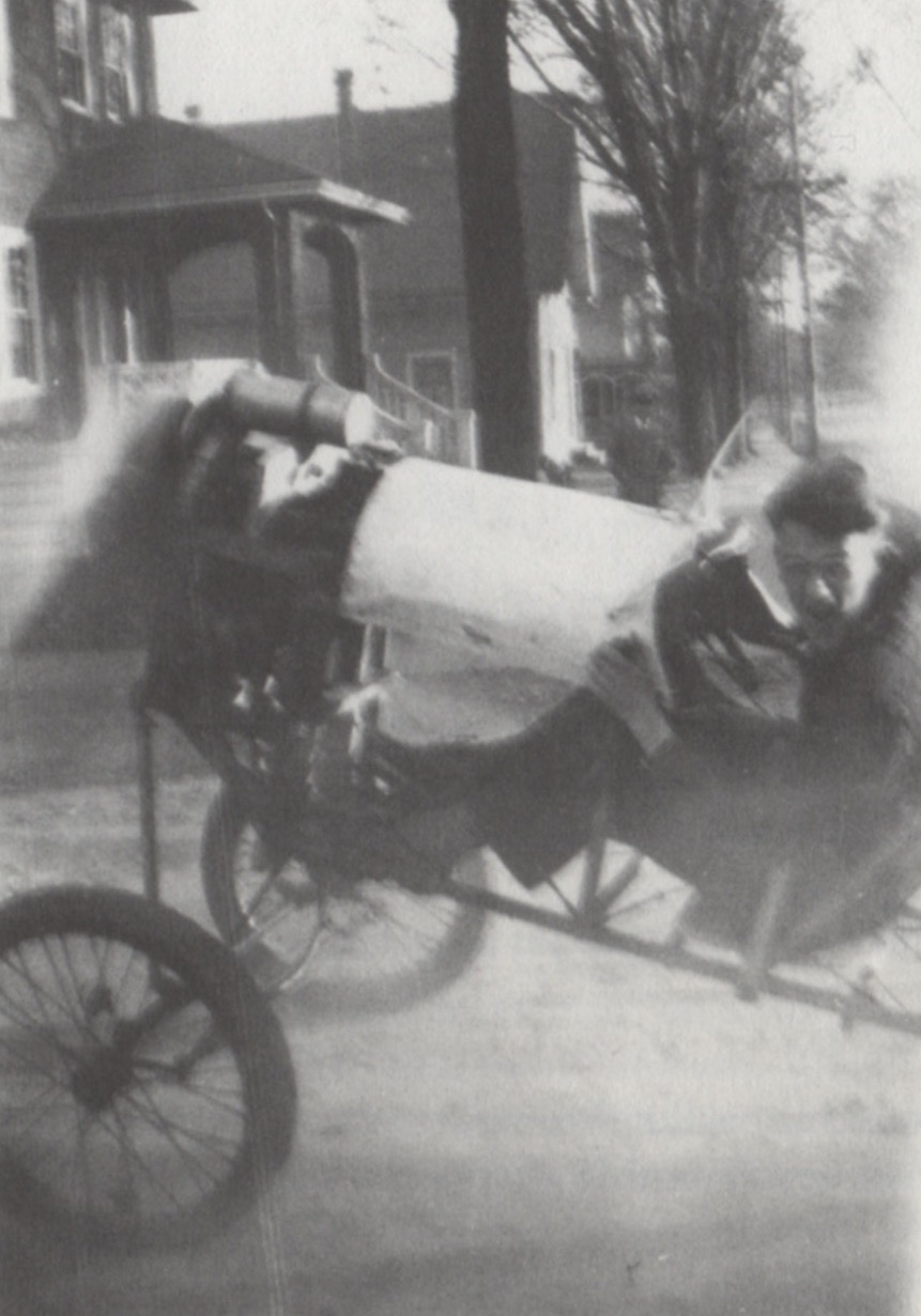 In 1928, Bill built the first of two Aero-Triple-Cycles, as in aero-inspired by a prop drive, triple by virtue—or vice—of its three wheels, and cycle suggesting its road-based mobility. He wrote about it in Equations of Motion: Adventure, Risk, and Innovation.