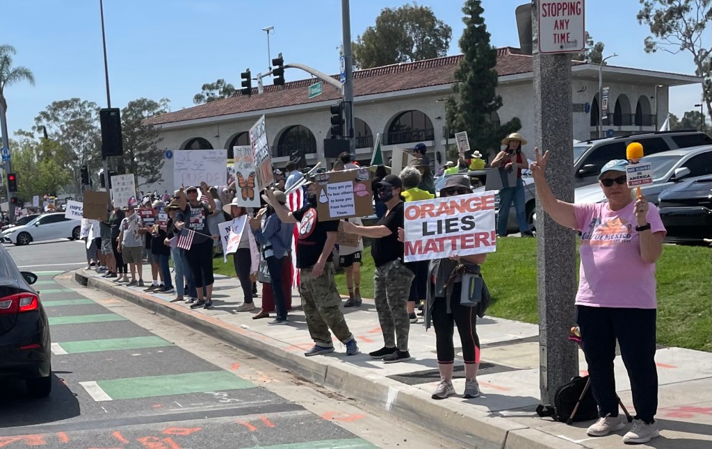 An enthusiastic gathering along “main street U.S.A.” here in SoCal. (Accompanying by encouraging horn beeping.)