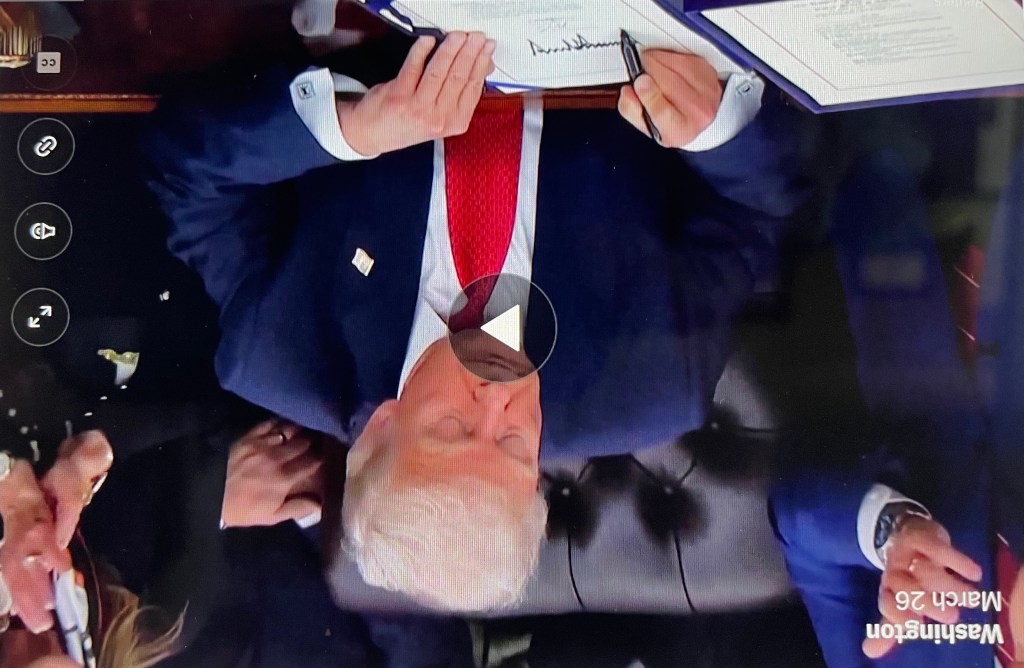 An Unprecedented Change. Alan Rappeport recounts in “Trump’s Signature Is Set to Be Added to America’s Currency,” The New York Times, March 26, 2026: “Mr. Trump is set to become the first sitting U.S. president to have his signature on the greenback. His name will appear alongside [to the left of] that of Treasury Secretary Scott Bessent. As a result, the U.S. treasurer, whose name has been on the currency for more than a century, will not appear on the currency.”