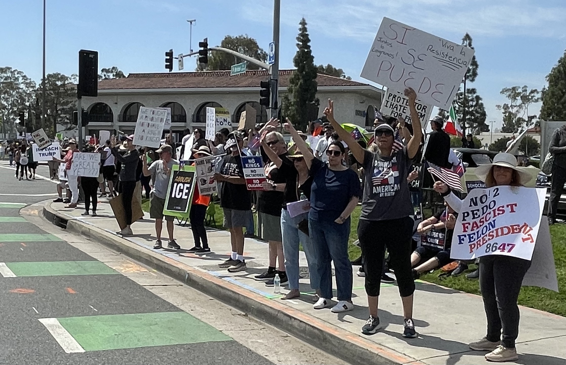 An enthusiastic gathering along “main street U.S.A.” here in SoCal. (Accompanying by encouraging horn beeping.)