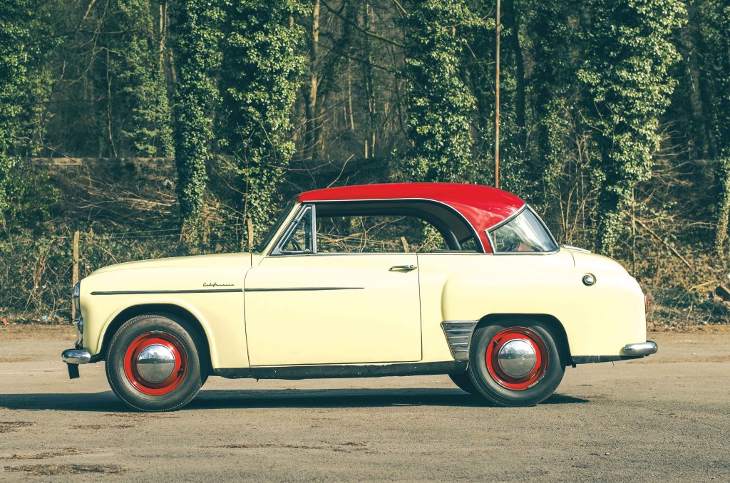 The 1953 Hillman Minx Californian. “I’m going to stick my neck out,” relates Martin, “and say that the Californian was Britain’s only pillarless hardtop during its three-year run, which was a brave move for what was the first fully unitary-bodied Minx.”